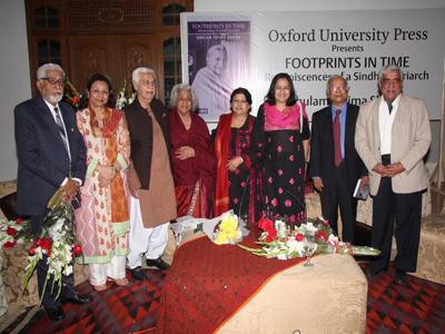 Oxford University Press launched its latest publication Footprints in Time: Reminiscences of a Sindhi Matriarch by Ghulam Fatima Shaikh. Translated from Sindhi by Rasheeda Husain, Ghulam Fatima Shaikh's saga spans two continents and two centuries as she witnessed and experienced some of the most tumultuous events of history of the subcontinent. This memoir provides a first-hand account of what conversion from Hinduism to Islam meant in practice; and its impact on Sindhi society from the late nineteenth century onwards. It contains intriguing information about what it was like to be a family that spanned the Hindu Muslim divide, and how individual members coped with the challenges and pressures generated by conversion. Sindhi Muslims were caught up in the Khilafat agitation of the period spanning the First World War and its immediate aftermath. This memoir presents an intimate picture of how this could affect one family and gives a clearer sense of what the Ottoman Empire 'meant' to Muslims of the subcontinent and how far some of them were prepared to go to support its continued existence. This account depicts a society in transition as a result of the war, the struggle for Indian independence and the rising aspirations of Indian Muslims.