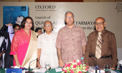 Karachi, 22 Sept.: Oxford University Press (OUP) launched its recently published book Quaid-i-Azam nay Farmaya compiled and edited by Sharif al Mujahid and Liaquat Merchant. The booklet an Urdu translation of Quotes from the Quaid also published by OUP in 2007 is a compilation of the inspiring quotes and maxims of the founder of Pakistan. Put together from various materials available on him, these thought-provoking words are eminently purposive in spelling out Jinnah's vision of Pakistan, thus illuminating his humane brilliance and the wisdom of his remarkable mind. Although Jinnah spoke on a multitude of issues in the course of his long and illustrious career, this compilation includes his words and thoughts on areas relevant to contemporary Pakistan and provides guidance to Pakistanis in various important spheres of public and private life.
