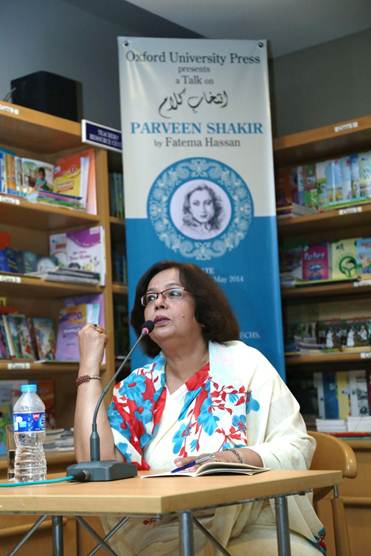 Oxford University Press organized a talk based on its publication Intikhab-e-Kalam: Parveen Shakir compiled by Fatema Hassan, on 21 May 2014 at the Oxford Bookshop, Khalid bin Waleed Road, Karachi.The book is a representative selection of the poetry of Parveen Shakir, one of the most outstanding modern Urdu poets. In her talk, Fatema Hassan discussed Parveen's literary journey beginning with how she came into the limelight after the publication of her first collection Khushboo. Dr Fatema Hassan is the Honorary Secretary of Anjuman Tarraqui e Urdu and has published seven poetry collections.
