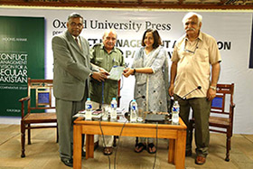 Karachi, 30 May: Oxford University Press launched its latest publication Conflict Management and Vision for a Secular Pakistan: A Comparative Study by Moonis Ahmar.This book aims to examine the vision for the state of Pakistan as perceived by the founders of the country. It argues that conflicts, particularly those at sectarian and communal levels, can be effectively managed by following a secular approach. The author points out that this would require the adoption of a secular toolkit primarily composed of tolerance, neutrality in religious matters, religious freedom, good governance, and the rule of law. This study argues that the issue of religious militancy and violence can be successfully dealt with by introducing a secular order. It aims to develop a secular approach and mindset that will unshackle the process of conflict management in Pakistan, based on the experience of European, Turkish, Indian, and Indonesian experiments with secularism. Dr Moonis Ahmar is Professor of International Relations at the University of Karachi and the Director of the Programme on Peace Studies and Conflict Resolution. His field of specialization is conflict and security studies focusing on the South and Central Asian regions. Dr Ahmar has 29 years of experience as an academic in Pakistan, and in different foreign universities and research think tanks. He is the author of two books, four monographs, and has edited fifteen books on different themes of International Relations. The speakers at the launch included Babar Ayaz, author and senior journalist, and I.A. Rehman, Secretary General, Human Rights Commission of Pakistan. Both of them underscored Moonis Ahmar's stance that instead of taking up arms one should learn the art of managing a conflict and strive to resolve it in a peaceful manner. In her welcome address, Ameena Saiyid, Managing Director, Oxford University Press Pakistan, said that she was delighted to launch a book as relevant to today's Pakistan as Dr Moonis Ahmar's Conflict Management and Vision for a Secular Pakistan. However, it is time we all put our heads together and carefully evaluate solutions for stabilizing one of the most volatile periods in our history. she further added. Moonis Ahmar gave his concluding remarks in which he highlighted that a secular approach does not imply anti-religious thought or practice, rather a neutral and unbiased way of understanding that can be perceived as just and fair.